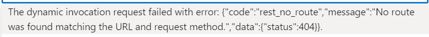 The dynamic invocation request failed with error: {"code": "rest_no_route", "message": "No route was found matching the URL and request method."}